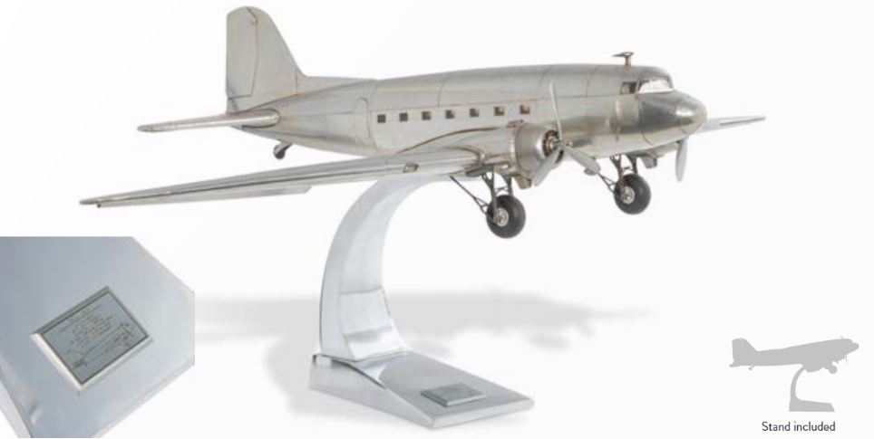 Gyönyörű, kézzel készült alumínium modell mely tökéletesen adja vissza a Dakota DC-3-as formavilágát. Méltó dísze lesz lakásod nappalijának vagy irodádnak, akár műhelyednek is.